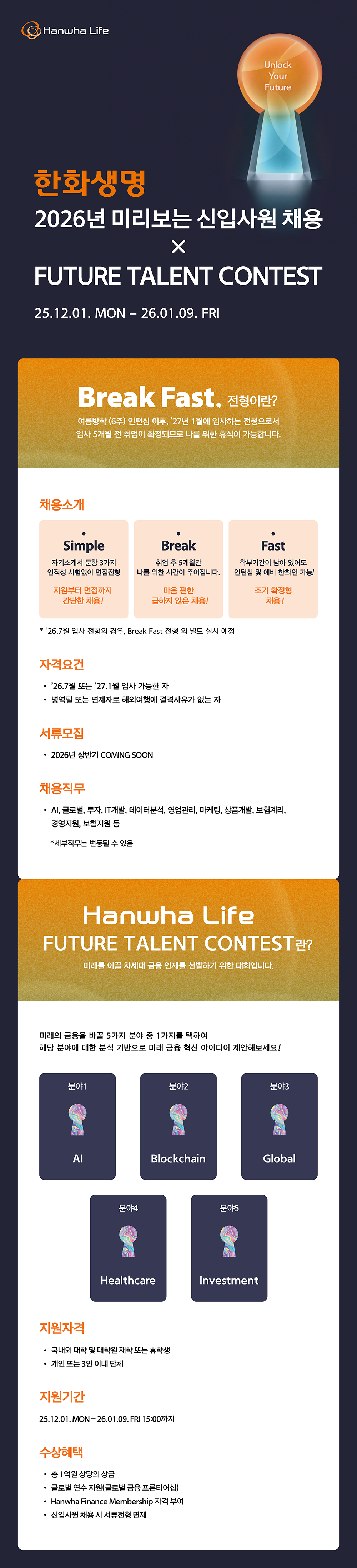 한화생명 2026년 신입사원 채용 X FUTURE TALENT CONTEST